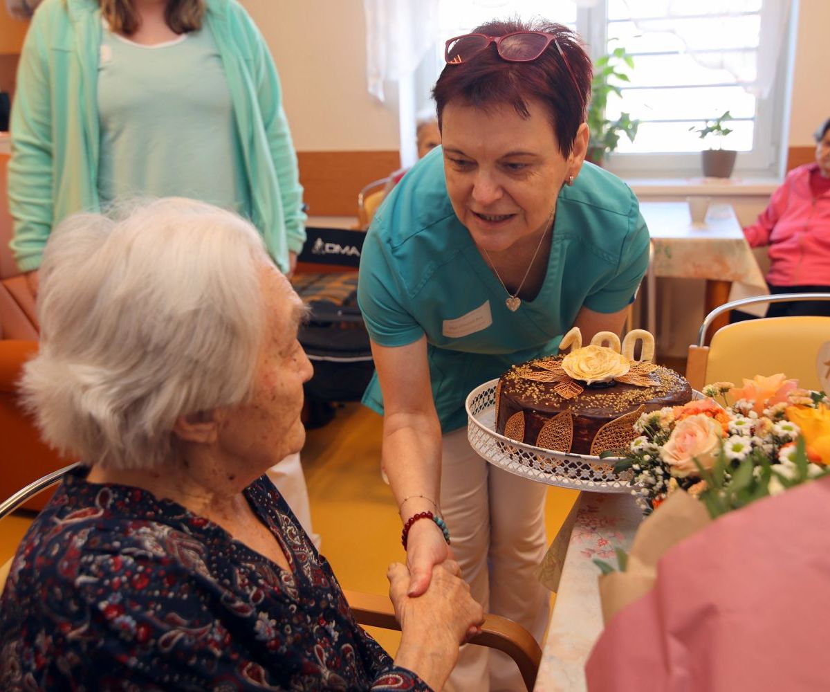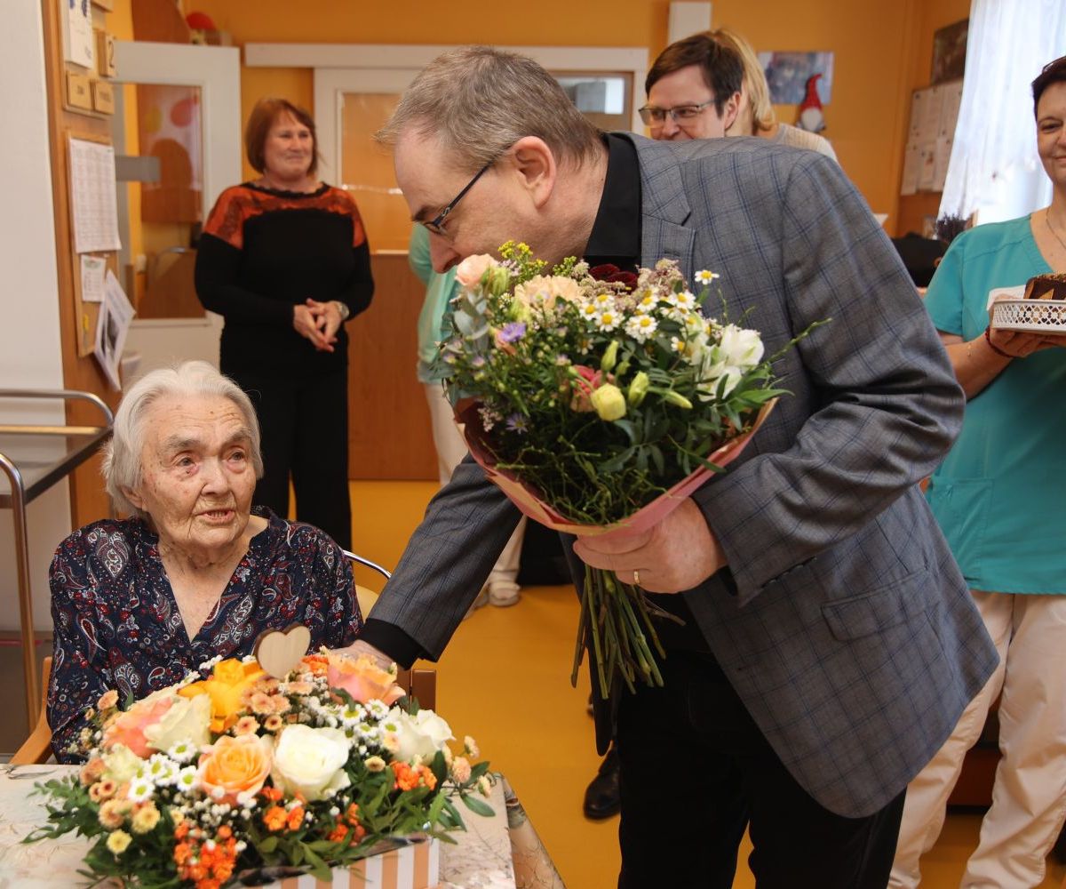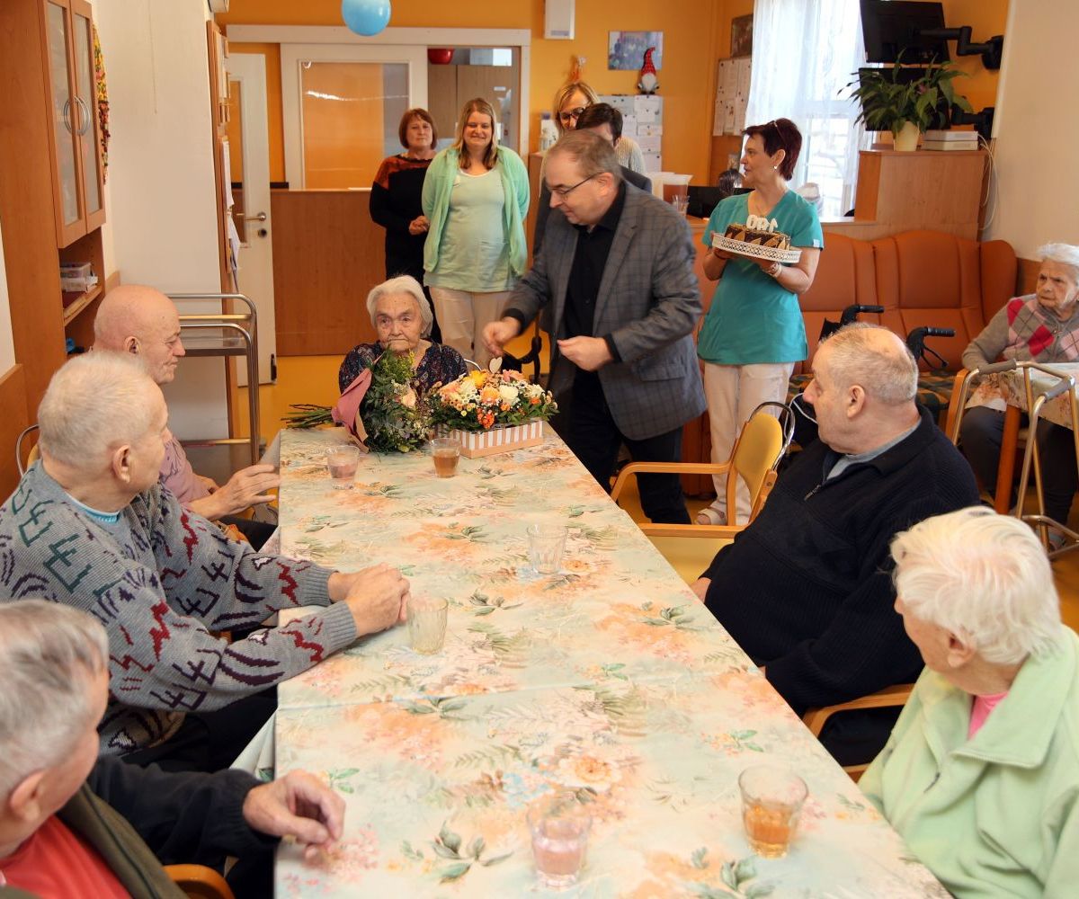 K významnému životnímu jubileu jí přišli popřát zaměstnanci domova i zástupci města. Osobně gratulovali starosta Petr Hájek a místostarosta Jiří Preclík. Nechyběla květinová výzdoba ani slavnostní dort se symbolickou stovkou. Setkání proběhlo v příjemné a srdečné atmosféře za účasti dalších obyvatel domova.