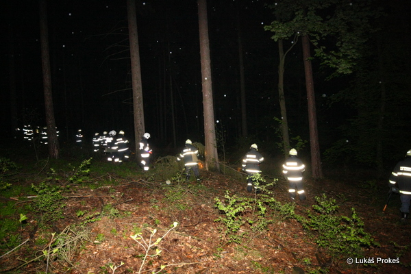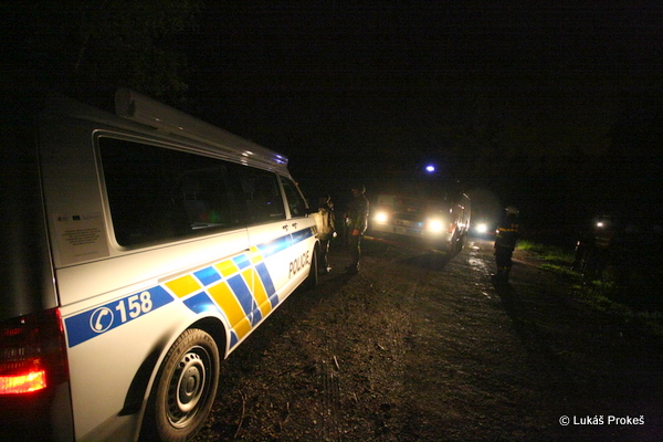 noční pátrací akce v lese za letištěm